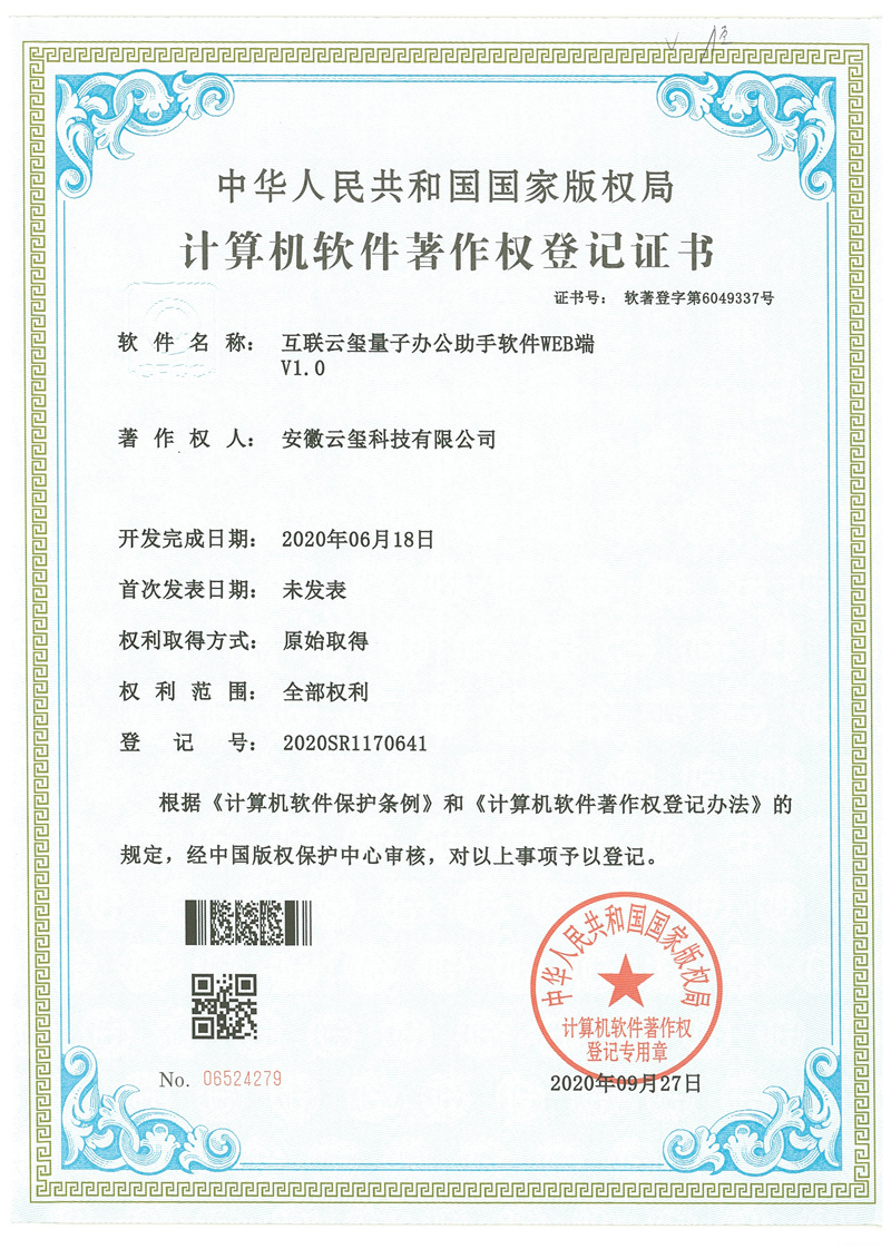 云璽量子是合肥市量子信息產(chǎn)業(yè)重點(diǎn)企業(yè),國(guó)家信創(chuàng)工委會(huì)成員企業(yè),中國(guó)信創(chuàng)500強(qiáng)企業(yè)。主營(yíng)業(yè)務(wù)包括量子安全智能印簽、量子安全智能辦公、量子安全云服務(wù),為政企客戶提供量子安全整體解決方案。