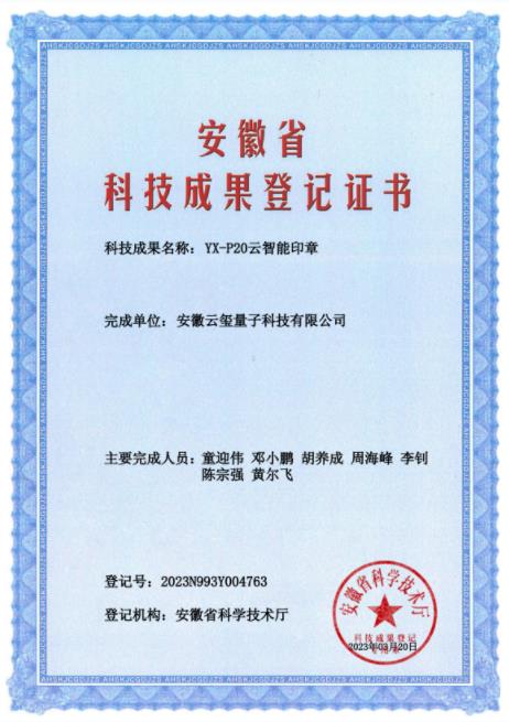 安徽省科技成果登錄證書(shū)